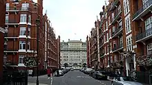 It is part of the Portman Estate and dates back to the eighteenth century. Historically it was known as East Street, with the name changing in 1937. Until the second half of the nineteenth century it didn't run as far north as the Marylebone Road, with the short David Street and buildings blocking the route. It is one of several streets and buildings in the area with names linked to the Chiltern Hills, which were connected to Marylebone from both the Metropolitan Line and the Great Central Railway from Marylebone Station.[2] The street shares its name with the Chiltern Court building over Baker Street tube station which was planned in 1912 but not fully constructed until the 1920s after wartime delays. An entrance to the station is located on the junction between Chiltern Street and Marylebone Road.