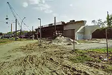 The regional planning of Marzahn-Hellersdorf expected shortly thereafter (in 2013) that construction works on the remaining section will start in 2016 with an estimate of the total costs of about 90 million Euro.[6] While the agreement on an early construction did hold the details were changed in the following years. The Senate is favouring a four-lane road that runs completely on the Eastern side of the rail tracks with at least six additional exits with most of them being at-grade. Many house owners do not want an exit to their street however. As a consequence the building department runs extensive studies in preparation of potential lawsuits, and it expected in October 2015 that the planning approval process will not start before 2017 with a formal planning approval to be reached in 2019. When construction starts in 2019 the road will be ready in 2022.[7] With that information the officials of the Senate and the Borough parliament expressed their intent to speed up the process. In a public hearing in November 2015 it became clear however that not even the alignment is fixed so that there is little chance to start construction earlier than some when in 2018.[8]