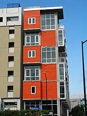 In 2011, developers David Malmuth and Pete Garcia, revealed a concept for new, innovative development within East Village with a focus on innovation, design, education, and the arts.[3] These four points would serve as the acronym for this proposed district, the I.D.E.A. District.[4] Within East Village, about 38 city blocks were encompassed within the plan. Planned development for the area included 3 million square feet of office and studio space, 600,000 square feet of commercial retail and restaurants, and 2,200 new apartments. The main focus of the project revolved around innovating and creating new tech jobs for the area while being a cutting-edge urban development for the workforce of tomorrow.[5] The first project in this proposal was known as IDEA1, an apartment complex which opened in 2017 to kickstart the project.[6] Another recent opening within the I.D.E.A. District was in May 2022 with UC San Diego's Park & Market. It will serve as a "social and intellectual hub for civic engagement, learning and collaboration."[7]