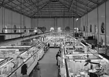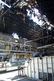 Eastern Market was badly damaged by an early-morning 3-alarm fire on April 30, 2007.[6] The heaviest damage was in the South Hall of the market, the portion occupied by vendors' stalls, where the roof suffered a partial collapse. The Washington Post has described the South Hall as "gutted so badly that birds can now fly in through the front windows and out the back ones."[7] Following the fire, Washington, D.C., Mayor Adrian Fenty promised to rebuild the market.[8] The outdoor weekend market was disrupted but never closed. Many of the food vendors re-opened for business within weeks of the fire, selling their products outside of the building. In August 2007, the city completed a temporary market annex, known as the "East Hall," on the opposite side of 7th Street, on the grounds of Hine Junior High School. This housed the vendors until the reopening of the market building, with a ribbon-cutting on June 26, 2009. The Washington, D.C., Fire and Emergency Services Department determined officially that the fire originated outside of the Eastern Market between a dumpster and the exterior of the west wall, and that the fire was caused by an electrical failure on the electric supply wire for a nearby trash compactor.[9] However, former D.C. fire investigators Gerald Pennington and Greg Bowyer have suggested the fire was deliberately set by suspect Joel Ramos.[10]