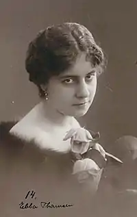Ebba Thomsen was born in Copenhagen, Denmark on 3 May 1887, the daughter of Ove Thomsen, one of the leading Danish fashion designers.[1] Thomsen debuted on stage at Det Ny Teater in 1910 and began to perform in cinema in 1912 at Nordisk Film. From then until the early 1920s, Thomsen appeared in about 75 films—mostly as the lead actress—and achieved star status in Denmark.[1] Her most notables roles were in films in which she worked with Nordisk Film's biggest male star, Valdemar Psilander.