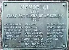 Ebenezer Eastman's paternal grandfather, Roger Eastman (c. April 4, 1610 - December 16, 1694), was born in Wiltshire, England[4] and arrived in Salisbury, Massachusetts, in 1638 aboard the ship Confidence as an indentured servant of John Saunders.[5] He married a woman named Sarah, with whom he had ten children. Roger worked as a planter and house carpenter and served in King Philip's War, as did his third child, Philip (Ebenezer's father).