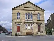 Eccleshill Mechanics' Institute on Stone Hall Road was built in 1868.[18] Charles Bottomley converted the upper floor of the Eccleshill Mechanics' Institute into a 359-seat picture hall which he named Eccleshill Picture House and then opened in 1911.[19] Shortly after this the cinema was renamed 'Picture Palace' but closed in 1931 never running any 'talkies'.[3][19] Before construction of the building the institute used to meet in the now demolished school buildings at the western end of Chapel Street on a site now occupied by Eccleshill Victoria Conservative Club.
