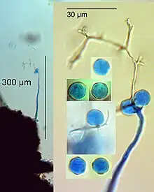 Echinostelium is a genus of slime mould, and the only genus in the monotypic family Echinosteliaceae,[1] or Echinosteliidae.[2] It was discovered by Heinrich Anton de Bary in 1855, apparently near Frankfurt am Main.[3] Some species of Echinostelium have a sexual life cycle; others have been shown to be asexual.[4] The plasmodium can divide vegetatively, in a process called plasmotomy, to distinguish it from true cell division.[5]