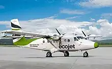 Ecojet intends to launch with the 19-seat Twin Otter aircraft before upscaling to a 70-seat Dash 8 airliner 18 months thereafter.[10] With a payload of 1,375 kilograms (3,031 lb), the range of a Twin Otter is 400 nautical miles (740 km; 460 mi).[11] The distance from Edinburgh to Southampton is 309 nautical miles (572 km; 356 mi).[12]