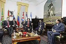 Dmitry Medvedev, Hugo Chávez, Evo Morales, and Daniel Ortega met to discuss the proposed regional economic bloc known as ALBA on 27 November 2008.