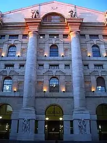 Milan's service sector has benefited from the efficiency of the city's banks and the stock market, the Borsa Italiana, located in Piazza degli Affari in the centre of the city.[12]