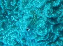 Ecsenius opsifrontalis, known commonly as the comical blenny in Micronesia, is a species of combtooth blenny in the genus Ecsenius. It is found in coral reefs in the Pacific Ocean. It can reach a maximum length of 5 centimetres. Blennies in this species feed primarily off of plants, including benthic algae and weeds, and are commercial aquarium fish.[2]