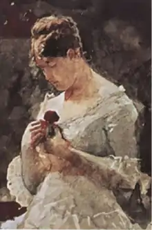 She was the owner of the watercolor on paper A Woman with a Rose by Winslow Homer, ca. 1879, donated in 1938 to the San Diego Museum of Art. She also owned the watercolor Shepherdesses Resting (1879) and the drawing The Shepherdess (1878). In December 1879 at an auction held by William A. Butters and Company, she bought Man with Plow Horse, currently on loan to the Chicago Art Institute.[5] At the same auction she possible bought the pencil and gouache on paper Through the Fields (1879), in 1923 appeared at the J.W. Young Galleries, in Chicago, Illinois.[6]