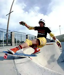 Elguera,[1] who was given the nickname "El Gato" (Spanish for "The Cat") early on in his career (in reference to his Mexican American heritage), is known as a legend in the sport and one of the early innovators of vertical skateboarding.[2]