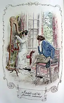 Mary plays the harp for Edmund each morning at Mansfield parsonage