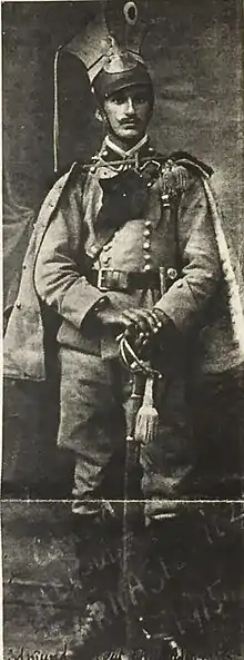 From 8 July 1920, he served in the 16th Greater Poland Uhlan Regiment as a podporuchik of cavalry, and commanded by Major Ludwik Kmicic-Skrzyńskii whom appointed him commander of the 3rd Squadron.[5] In this function he participated in battles against the Soviets[6] (for service in the 15 ACS received the Cross of Valour[7]).