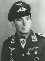 Edmund "Paule" Roßmann (11 January 1918 – 4 April 2005) was a Nazi Germany Luftwaffe fighter ace during World War II. He was credited with 93 aerial victories achieved in 640 combat missions, among the numerous ground attack missions. A flying ace or fighter ace is a military aviator credited with shooting down five or more enemy aircraft during aerial combat.[1] He is also noted as being an early mentor of Erich Hartmann, history's leading fighter ace.
