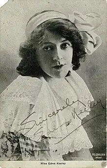 Edna Keeley was born in North Dakota in April 1884.[1][2] She performed on stage as a child actress[3] with her mother Marguerite De Estes.[4][5]