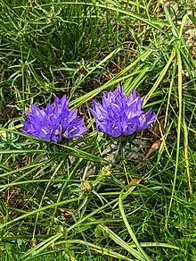 This herbaceous perennial is native to the mountains of Dalmatia in Croatia but now used in gardening. It is a tufted species with narrow grass-like leaves, 2 to 4 inches in length, and flower-stems at first drooping, afterwards erect, 4 to 6 inches high, with large flowers of a violet-blue color, in clusters which appear in July and August.