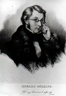 Eduard Böcking (May 20, 1802 – May 3, 1870) was a German legal scholar. He is best known for his editions of, and commentaries on, the legal works of classical antiquity.