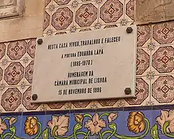 - A commemorative plaque was unveiled by the Lisbon City Council on the building where Lapa lived and died, at Rua Capitão Renato Baptista.
