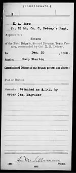 - ↑ Hill, Clement (1893), Scott, Robert (ed.), The war of the rebellion: A compilation of the official records of the Union and Confederate armies, vol. 53, Washington D. C.: Government Printing Office, pp. 1052–1053