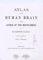 - Atlas of the human brain, and the course of the nerve-fibres, by Edward Flatau, with a preface by E. Mendel. Berlin, S. Karger, 1894. 25 pages.