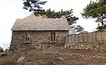 Kuster married Ruth E. McDowell in 1920. Inspired by castles from his trip to Germany, he and his wife designed and built the house in 1920, with the help of contractor Lee E. Gottfried, a small Medieval European-style stone castle at 26205 Ocean View Avenue off of Scenic Drive on Carmel Point. Like Tor House, it was made of granite stones brought up from the Carmel beach. The roof is done with Vermont slate. The Jeffers and Kusters became great friends.[3][8]