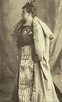 - 1 2 3 "Woman Miner's Farewell Dazzles Denver Society". Los Angeles Times. Apr 13, 1913. p. 1. Retrieved June 28, 2018 – via Newspapers.com.