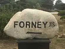 In August 1956, Forney was attached to the Office of the Secretary of Defense in Washington, D.C., and served with assistant secretary for international security affairs as assistant for special programs until June 1957. Forney was subsequently ordered back to Korea and appointed commanding officer, U.S. Marine Corps Component, U.S. Naval Advisory Group. In this capacity he served as U.S. Marine Corps advisor to the Republic of Korea Marine Corps. During this time, Forney helped establish the 1st Marine Division base in Pohang, for which the division named a road in his honor in 2010.[14][15] Forney retired from the Marine Corps after 28 years of active service in June 1959 and was advanced to the rank of brigadier general for having been specially commended in combat. He also received Army Commendation Medal for his second tour of duty in Korea.[1][2]