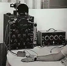 When the war ended he transitioned to the second major phase of his research career, the electrophysiology of neuromuscular disease.[3] In 1947, Lambert, building his own machine, founded the first electromyography lab in the United States and, soon after, the first EMG training program.[9] His research began in 1948, with the application of EMG to myasthenia gravis.[4] In 1956, he and colleague Lee Eaton were the first to describe the clinical and EMG characteristics of the disease now known as Lambert–Eaton myasthenic syndrome. This was the first pre-synaptic disease found, differentiating it from myasthenia gravis.[10] With over 280 publications, his contributions spanned the field of peripheral neurology.[1] His early studies established EMG as a basic neurological tool. With Peter Dyck, he defined many forms of neuropathy and with Andrew Engel he did the same for myopathies. With his wife Vanda Lennon, he helped define the immnunogenesis of myasthenia gravis. Lambert mentored generations of EMG fellows, many of whom became leaders in the field of peripheral neurology;[1] this has been called his greatest legacy.[3] He had a mandatory retirement from the Mayo at age 70, but continued doing research and projects until age 83.[4] He is frequently regarded as the father of EMG.[11][12]