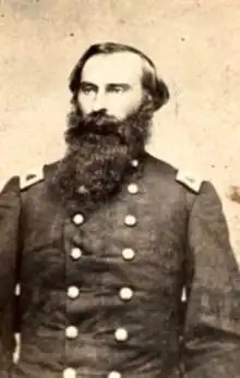 After the Union defeat at the Battle of Chickamauga, General Grant arrived there and assumed overall command. When Colonel John Croxton was wounded during the battle he was unable to maintain command over the 3rd Brigade and command was subsequently given to Colonel Phelps who was the regimental commander over the 38th Ohio Infantry, which was assigned to the 1st Division after Chickamauga.[1][2] The Army of the Cumberland was re-organized and the regiments were assigned to various positions. Because of Phelps’ good service he was assigned command over the 3d Brigade, 3d Division of the 14th Army Corps, which included Phelps’ own 38th and the 14th Ohio Infantry. This promotion to brigade command did not, however, include a promotion in rank, and Phelps remained a colonel.[1] On November 25, 1863, during the taking of Missionary Ridge at Chattanooga, Tennessee, while Phelps and his men were ascending the slope, he was shot and wounded but continued on leading his men. Phelps was then shot a second time and killed as he neared the summit; he was the only Union officer of brigade-command or higher to lose his life during the battle.[1][3][4][5]
