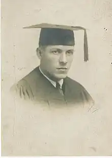 Hogan enrolled at The Rayen School in 1915. His earliest visibility was as a halfback for the Rayen football team, where he played a decisive role in the school's victory over rival South High School.[5] For all his success on the gridiron, however, Hogan's greatest feats were in track and field. The Rayen Record reported, in June 1917, that Hogan was part of the school's first "triumvirate" in track and field.[6] During a field meet at Mt. Union College, on May 18, 1917, he helped Rayen secure third place in the state. He also threw the javelin 153 feet and eight inches,[7] to establish a state record that stood for decades.[1]