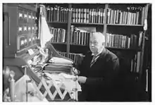 Siedle was described as "a man large in frame, stooped, with a big cigar drooping from the corner of his mouth... He looked a bit like the Winston Churchill of today."[6] He was rarely seen without a black fedora hat and a cigar in his mouth.[7] His office was described as "cluttered with books, papers, boxes, wigs, and full of a truly startling and heterogeneous collection of furniture, hangings, materials, and odds and ends."[8]