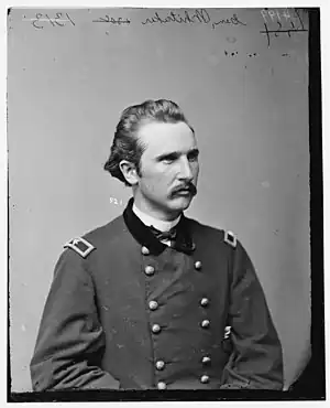 In March 1865, at age 23, he was brevetted (i.e. an honorary promotion) as a brigadier general of volunteers for meritorious service during the war and was one of the youngest generals in the Civil War. (The youngest general of the Civil War was Galusha Pennypacker who was promoted to brigadier general shortly before he turned 21.) He was honorable mustered out of service on August 2, 1865.[3]