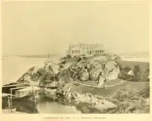 Summer residence, nicknamed the "Acropolis of Newport" completed around 1890 in Newport, Rhode Island for Morgan, and designed by architect Stanford White of Mckim Mead & White.[2] With deep water at both sides of the peninsula in Bretons Cove, he kept his large yacht Constellation,[3] along with the smaller racing yachts he owned while residing there.