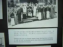 - ↑ KING, Gordon, "The History of the Tsan Yuk Hospital, 1922–1955", The Bulletin of the Hong Kong Chinese Medical Association Vol. 8 No. 1, July 1956.