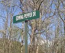 In 1950, the widowed Edwina S. Pepper lived with her son John and his wife Eleanor, along with her oldest son, Curtis G. Pepper, and his wife, Beverly Pepper in San Diego, California.[12] In the summer of 1945, Pepper began to visit Mingo County, West Virginia, and investing land that she might buy that would be adjacent to the land she inherited from her father. When she moved back to West Virginia, she had two great-nephews and twins, John and Michael Fanning, living with her and attending the local Big Laurel school until it closed down.[2][13] Pepper other members of the community formed groups to successfully tackle opening up a school that was more convenient and would cater to the needs of the children, establish telephone service and electricity. They raised money to fund the improvements. They ensured that political officials were not performing crimes in conjunction with their positions.[2]
