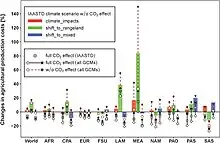 - ↑ Zhao, Chuang; Liu, Bing; Piao, Shilong; Wang, Xuhui; Lobell, David B.; Huang, Yao; Huang, Mengtian; Yao, Yitong; Bassu, Simona; Ciais, Philippe; Durand, Jean-Louis; Elliott, Joshua; Ewert, Frank; Janssens, Ivan A.; Li, Tao; Lin, Erda; Liu, Qiang; Martre, Pierre; Müller, Christoph; Peng, Shushi; Peñuelas, Josep; Ruane, Alex C.; Wallach, Daniel; Wang, Tao; Wu, Donghai; Liu, Zhuo; Zhu, Yan; Zhu, Zaichun; Asseng, Senthold (15 August 2017). "Temperature increase reduces global yields of major crops in four independent estimates". Proceedings of the National Academy of Sciences of the United States of America. 114 (35): 9326–9331. Bibcode:2017PNAS..114.9326Z. doi:10.1073/pnas.1701762114. PMC 5584412. PMID 28811375.