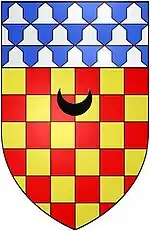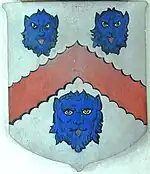 Anne Copleston (1588–1616), the heiress of Eggesford, married in 1605 Edward Chichester (1568–1648), later created Baron Chichester of Belfast and Viscount Chichester of Carickfergus. He was the second son [5] of Sir John Chichester (died 1569), of Raleigh, in the parish of Pilton, about 3/4 mile NE of the centre of Barnstaple, Devon,[6] by his wife Gertrude Courtenay (1521–1566), a daughter (by his 2nd marriage) of Sir William III Courtenay (1477–1535) "The Great",[7] of Powderham, MP for Devon 1529, Sheriff of Devon 1522, 1525-6, 1533-4 and Esquire of the Body to King Henry VIII,[8] a distant cousin of the Earl of Devon.[9] He was thus the younger brother of Arthur Chichester, Baron Chichester (1563-1624/5). Anne Copleston died in 1616 aged only 28, having produced at least three sons to continue the Chichester line. Edward married secondly Mary Denham, which marriage is recorded by a date-stone now set in the wall of Eggesford Barton inscribed "E.C.M. 1626". This may be the date on which Edward Chichester completed his rebuilding of the former mediaeval Eggesford House, which is evidenced by William Pole (died 1635) in his "Description of Devon" thus: "Edward Vi.cont Chichester of Cairfus which hath builded a fayre howse dwelleth nowe at Eggesford". Tristram Risdon's 1620 "Survey of Devonshire" furthermore records regarding Eggesford that Edward Lord Chichester "hath made a dainty dwelling thereof". During the Civil War Lord Chichester allowed this house to become a garrison for royalist troops, under the command of Lord Goring, whose HQ was at Tiverton. It was stormed on 18 December 1645 by the Roundhead Colonel John Okey with a regiment of Dragoons, as part of the final push by the parliamentary troops northwards from Exeter to their final victory at the Battle of Torrington in February 1646. About twelve prisoners were captured and taken back top Okey's base at Fulford House near Dunsford. No trace of this Chichester house remains but it is believed to have stood on a level site some 50 yards to the NW of the parish church, and was later rebuilt on the same site in 1718 by William Fellowes, whose building was demolished in 1824, leaving only a level area in the large field which exists there today. Edward and Anne's eldest son and heir was Arthur Chichester, 1st Earl of Donegall (1606–1674/5), who erected a very elaborate alabaster monument to his first two wives in Eggesford Church. Although he produced six sons by his second wife Mary Digby (1612–1648), daughter of John Digby, 1st Earl of Bristol, it was his daughter Mary by his first wife Dorcas Hill (died 1630), a daughter of John Hill of Honiley, Warwickshire, who inherited Eggesford. This seemingly arose through the terms of a marriage settlement, not preserved in the records, in which John Hill insisted the manor should descend to the children, male or female, of his daughter and son-in-law. Such terms in marriage settlements were not unusual.[10] Thus were the sons of the Earl excluded from this part of the Chichester lands.