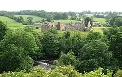 ![]() Ruins of Egglestone Abbey from the north, with the River Tees visible in the foreground | |