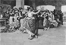 Among his main works: Delusione sent to Salon of Paris, but lost en route: Le regate at Venice; Due Popolani ai Giardini;[2] La festa degli sposi; Scuola di pittura; Da Mestre at Venice exhibited in 1881; Mezza festa ; Breve respiro; Barcaiolo, exhibited at Turin in 1880; A pié d' un ponte; L'Albo, exhibited at Milan in 1881; Esposizione artistica; Loto della pollastra; Capitolo primo, exhibited at Rome in 1883; La Zingara; Preparativi for the notte del Redentore at Venice, sent to the Exhibition of Milan of 1884; Assedio di Florence; Convegno, exhibited at Turin; After the dispute ; Fiori di maggio; and Monte Rosa.[3][4]