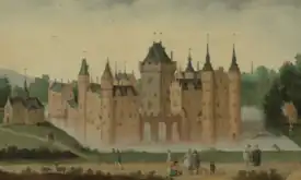 Egmond Castle around 1570 by Gilles de Saen, at view in the town hall of Zottegem