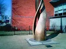 Egon Weiner (1906 – August 1, 1987) was a Chicago sculptor and longtime professor (1945–1971) at the Art Institute of Chicago. He was known for a 33-foot-tall (10 m) abstract bronze sculpture, Pillar of Fire, which can be found on the grounds of the Chicago Fire Academy on the spot where, legend has it, Mrs. O'Leary's cow knocked over the lantern that started the Great Chicago Fire of 1871.