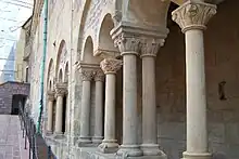 Particularly desirable as a building material were the limestone-like limescale accretions from the inside of the aqueduct. In the course of operation of the aqueduct, many sections had a layer as thick as 20 centimetres (7.9 in). The material had a consistency similar to brown marble and was easily removable from the aqueduct. Upon polishing, it showed veins, and it could also be used like a stone board when cut flat. This artificial stone found use throughout the Rhineland and was very popular for columns, window frames, and even altars. Use of "Eifel marble" can be seen as far east as Paderborn and Hildesheim, where it was used in the cathedrals. Roskilde Cathedral in Denmark is the northernmost location of its use, where several gravestones are made of it.[3]