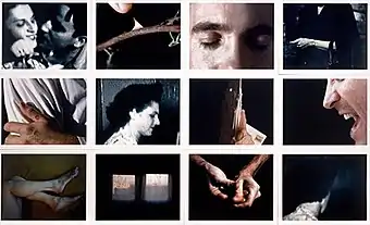 In the 1980s, Cowin continued to blur fiction and non-fiction in more fully constructed, cinematic scenes—an approach now sometimes called mise-en-scène photography—taking on a directorial mode that included storyboarding, scripting, staging actors, set design and framing.[2][5][37] Carefully controlling eye contact, the direction of gazes, gesture, expression and props, she clustered her "sets" with charged symbols and elements in order to create multiple, contradictory readings, while alluding to timeless themes such as romance, abandonment, danger, corruption, and salvation.[5][38][39]