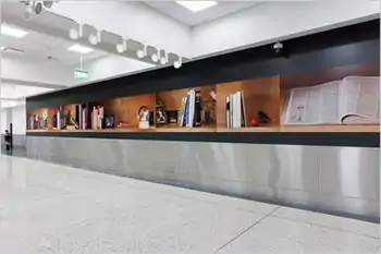 Cowin's 63-foot, photographic public mural, Shelf Life (2018, LAX), focused on objects, with a film-frame-like sequence of images of shelves containing carefully chosen books, photos and keepsakes; the interplay of text, titles and objects suggest narratives on contemporary social themes such as identity, citizenship, travel, place, and universal connection.[55][56] Cowin's other commissioned public works include billboards for LACMA's "Made in California" show (2000) and MAK Center for Art and Architecture's "How Many Billboards?" show (2010).[57][58] an installation for Los Angeles MTA's inaugural Metro Rail Light Boxes project, (2001), and a 14-sequence installation for the system's Martin Luther King Jr. station (future).[59][60][15]