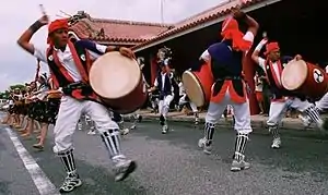 - Taiko Eisa: mainly performed in central Okinawa. A parade is led by male drummers and is followed by female or mixed dancers. A dozen songs are performed in a mid-tempo.