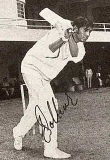 He did not play well against England in the away series of 1974, but dismissed Geoffrey Boycott in three successive innings (India vs Yorkshire and India vs MCC – first class fixtures). He scored his only Test century against the West Indies in Mumbai in 1975. Apart from his 53 catches in 27 Tests, he made 1,068 runs at an average of 25.42 and claimed 18 wickets at an average of 59.44.[1] In the 16 years of his first-class cricket career, he scored 6,851 runs at an average of 29.27, including eight centuries, took 276 wickets at an average of 30.01 and took 190 catches.[1] In Test Cricket, his job as bowler was to bowl 4–5 overs to take the shine off the new ball as much as possible before the Indian spinners took over.