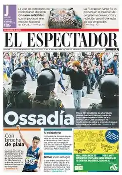 ![]() El Espectador front page, 18 September 2008 issue | |
