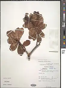 - ↑ World Conservation Monitoring Centre (1998). "Elaeocarpus coriaceus". IUCN Red List of Threatened Species. 1998: e.T38008A10091252. doi:10.2305/IUCN.UK.1998.RLTS.T38008A10091252.en. Retrieved 15 November 2021.