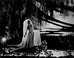 Lilian Gish posed as "The Lily Maid of Shadows" (a line from Tennsyson's "Lancelot and Elaine") in a publicity photo for the silent film Way Down East (1920)
