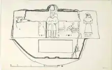 The Elamite rock relief in Naqsh-e Rostam is the oldest rock relief in Naqsh-e Rostam, belonging to the Elam culture. Bahram II, the Sasanian king, has destroyed this rock relief and carved his own relief on it. But small sections of the Elamite relief is still preserved. Scholars do not have consensus about the date of this relief. Ernst Herzfeld and Heidemarie Koch have suggested that the date of the relief is 4,000 years ago. However Alireza Shapour Shahbazi and Isa Behnam have suggested 1,200 BC as the date of this Elamite relief. The relief shows a god and a goddess seating on a throne. The legs of the throne are twisted with some snakes. On the right, there's a complete figure of a man with beard and long hairs. He has put his hands on his chest as a sign of respect to the god that once had existed in front of him, but now is completely destructed. On the left side, there's a figure of a woman with crown. It is believed that these man and woman are king and queen respectively and are worshiping the god and goddess. Small sections of God and Goddess figures are still visible, but can't be recognized duo to the destruction.