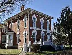 The Elbert-Bates House is a historical residence located in Albia, Iowa, United States. The house is named for two of its earlier owners. Benjamin F. Elbert was a cashier and member of the board of directors of the First National Bank of Albia, as well as a cattle farmer. He relocated to Des Moines, where he was a successful businessman. David W. Bates was a local attorney and banker. He served as the Iowa State Superintendent of Banking during the Great Depression. Elbert had the original house built from 1873 to 1875. Bates had the two-story Prairie Style-influenced solarium built onto the rear of the house from 1917 to 1918. The house originally had a wooden porch on the front, but, because of extensive wood rot, it was removed at the same time the solarium was added.